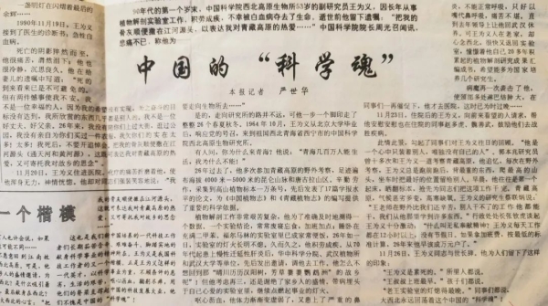 90年代的第一个岁末,中国科学院西北高原生物所53岁的副研究员王为义,因长年从事植物解剖实验室工作,积劳成疾,不幸被白血病夺去了生命。逝世前他留下遗嘱:“把我的骨灰顺便撒在江河源头,以表达我对青藏高原的热爱……”中国科学院院长周光召闻讯,悲痛不已,称他为——中国的“科学魂”。