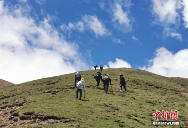 资料图为2022年6月24日,研究团队在青海省玉树藏族自治州玉树市巴塘乡,调研冬虫夏草野生资源和采挖现状。 中新社发 魏立新 摄