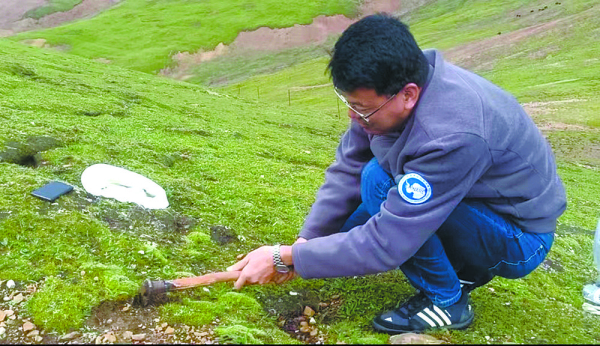出野外的魏立新。 中国科学院西北高原生物研究所供图