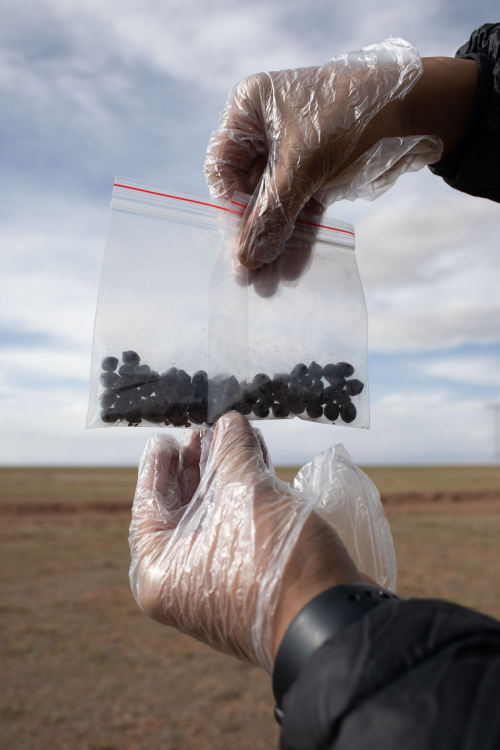 6月15日,王东展示刚采集的藏羚羊新鲜粪便样本