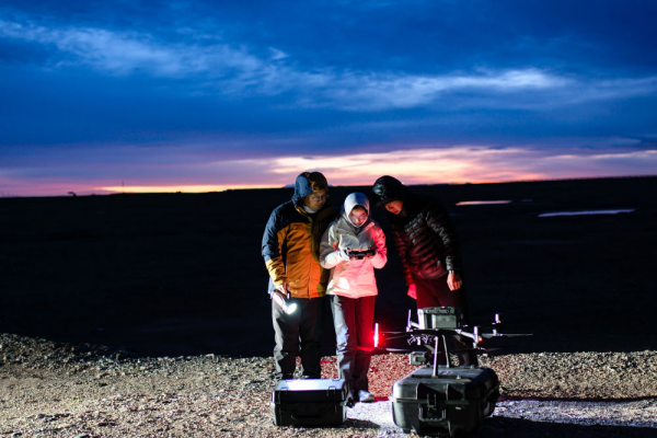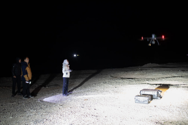 6月16日凌晨,连新明团队使用无人机监测藏羚羊迁徙途中的夜宿地