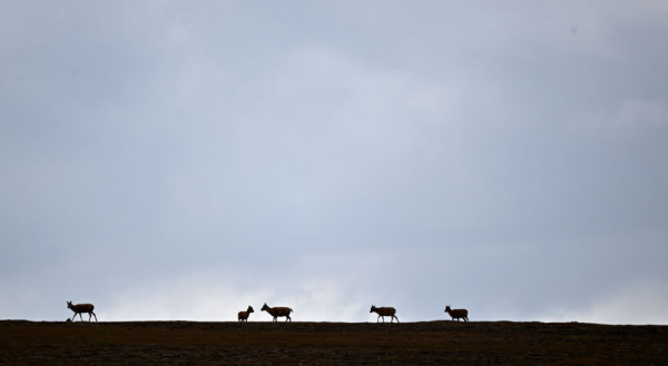 6月16日在可可西里卓乃湖区域拍摄的一群藏羚羊