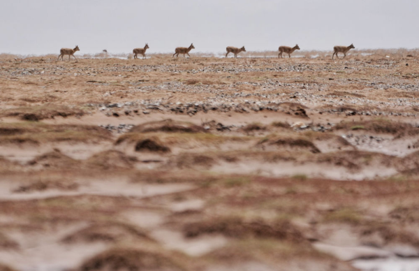 每年5月至7月,来自青海三江源、西藏羌塘、新疆阿尔金山等地的雌性藏羚羊会陆续迁徙到可可西里腹地卓乃湖、太阳湖产仔。每年聚集在卓乃湖产仔的藏羚羊可达数万只。