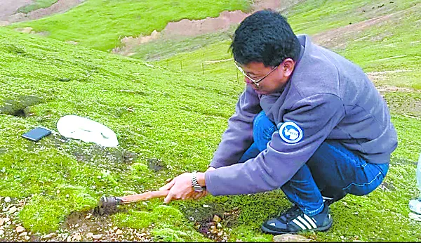 魏立新在果洛藏族自治州玛沁县采集标本。西北高原所供图