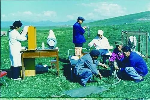 1985年,海北站科研人员在野外测定绵羊呼吸对高原草甸碳排放的影响。
