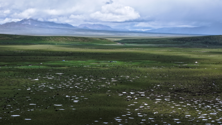An aerial drone photo taken on June 26,2025 shows the summer pastures of the grassland in Qilian County,Haibei Tibetan Autonomous Prefecture,northwest China's Qinghai Province. (Xinhua/Qi Zhiyue)