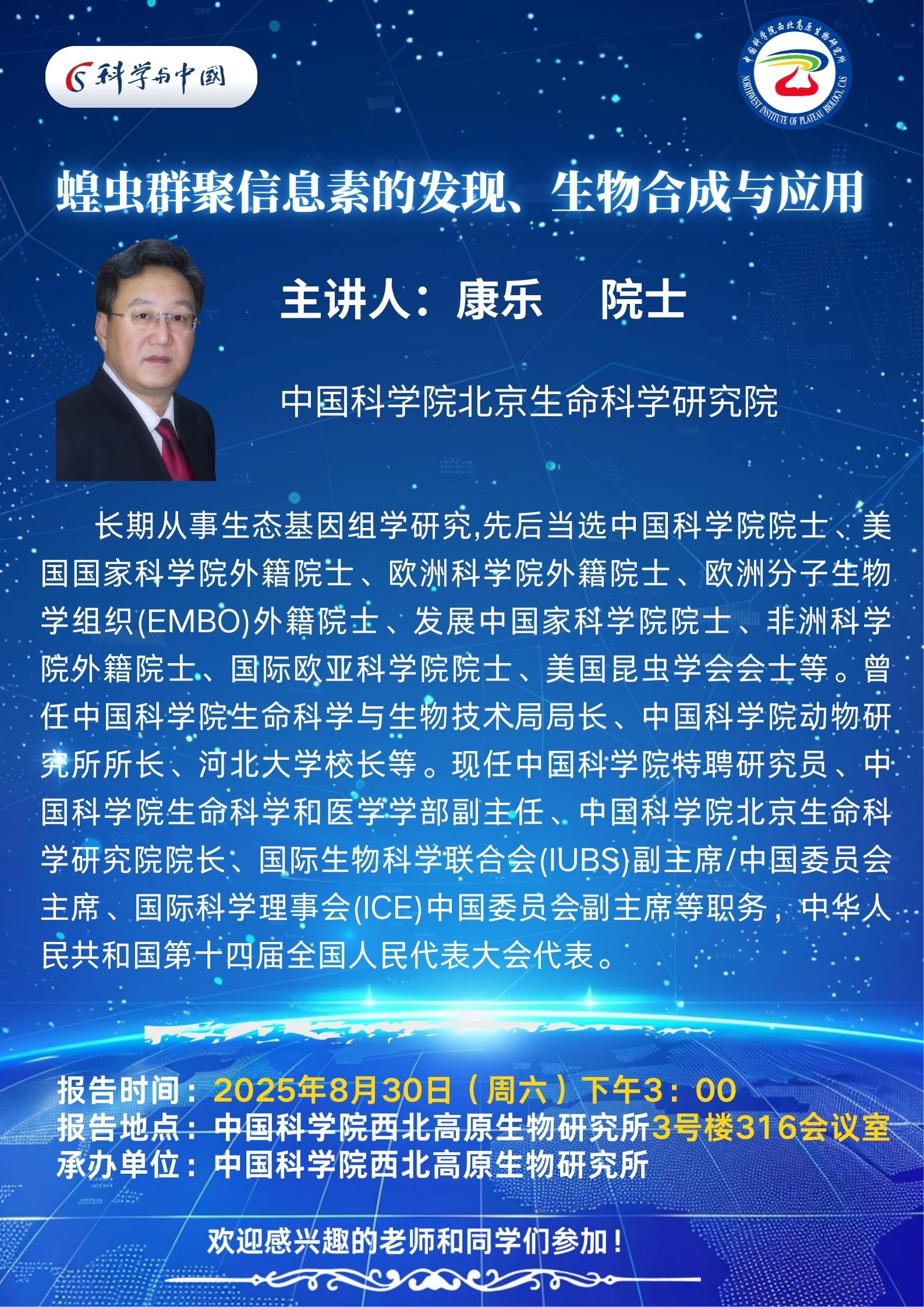 8月30日学术讲座通知 | 康乐院士:蝗虫群聚信息素的发现、生物合成与应用