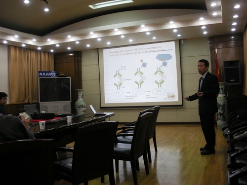 于化忠教授报告的题目是“Reading disc-based bioassays with standard computer drives”,从光盘的结构及特性、表面的处理、分析方法的建立及应用等方面做了详细的介绍。