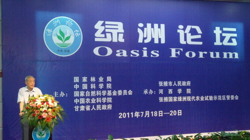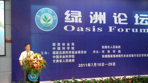 7月18日至20日,由国家林业局、中国科学院、国家自然科学基金委员会、中国农业科学研究院、甘肃省人民政府共同主办,张掖市人民政府、河西学院、张掖国家绿洲现代农业试验示范区管委会承办的第二届绿洲论坛在甘肃省张掖市隆重召开,论坛主题为“绿洲、生态、发展”。