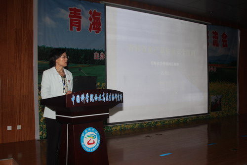 大会特邀了青海省兽药饲料监察所武秀云研究员、青海省疾病预防控制中心张辉研究员和西北高原生物研究所分析测试中心胡风祖研究员做主题报告。武秀云的“青海省畜产品质量安全检测现状”报告,介绍了兽药残留的危害、在磺胺二甲嘧啶钠试剂盒和试剂条的研究成果,以及他们在畜产品生产销售环节所采取的监测手段。张辉做了“青海省食品安全风险监测技术应用结果分析”报告,从食品安全监测中发现的问题入手,详细讲解了检测中样品的前处理方法及检测方法方面的经验。胡风祖“青海省无公害农产品与地理标志农产品检测现状”的报告,从青海省无公害农产品与地理标志农产品检测的起源、发展及现状等方面为科技人员做了详细介绍。