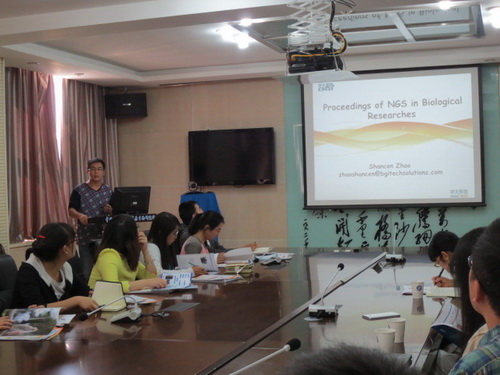 8月26日下午,应中国科学院西北高原生物研究所副研究员刘宝龙的邀请,深圳华大基因科技服务有限公司高级项目咨询师赵山岑,以及华大科技相关工作人员等一行4人在西北高原所进行学术交流。赵山岑作了题为“高通量测序在生物研究中的进展”的学术报告,报告会由刘宝龙主持,西北高原所副研究员沈裕虎、工程师刘瑞娟以及研究生等约20余人参加了报告会。