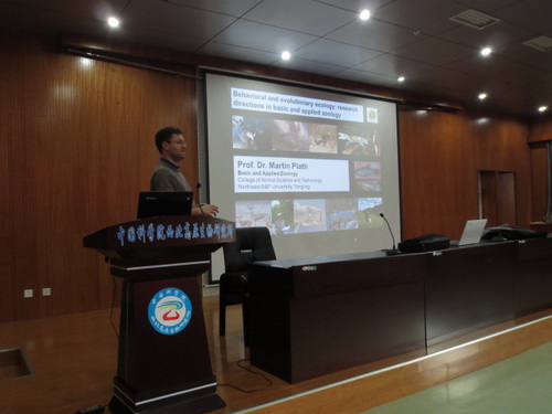 12月5日上午,应中国科学院西北高原生物研究所小哺乳动物适应性进化与管理课题组研究员张堰铭的邀请,德国法兰克福大学副教授Martin Plath以及卢旺达大学副教授Torsten Wronski来西北高原所进行学术交流,并做了题为《行为和进化生态学:基础和应用生态学的研究方向》和《沙特阿拉伯King Khalid野生动物中心的牧场生态和保护育种》的学术报告。