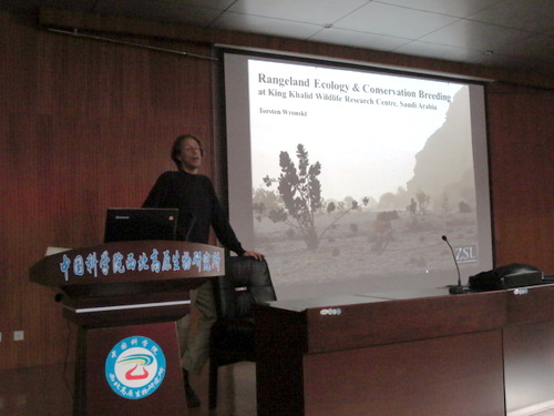 Martin Plath的报告首先介绍了生态学的研究方向:行为生态学和进化生态学;其次介绍了行为生态学和进化生态学的关联性;最后介绍了他所在实验室的研究成果。Torsten Wronski的报告分为四个部分进行。第一部分是沙特阿拉伯的野生动物生存状况和保护情况;第二部分是沙特阿拉伯Khalid野生动物园瞪羚的保护及繁育情况;第三部分是非洲和沙特等国家的瞪羚的生存和保护情况;第四部分是对中国野生动物保护的看法和建议。