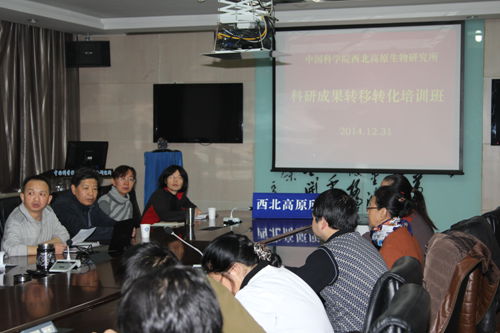 培训班由钟海民主持。吉文鹤介绍了《研究所科技成果转化管理办法》及近几年研究所转化的科研成果,索有瑞“特色生物资源研究开发与成果转移转化”的报告,介绍了青藏高原生物资源和青海省生物产业的特点,生物资源研究开发与成果转化的案例,结合本学科组科研成果转化的总体思路与产品开发方案和技术流程介绍了科研成果转化和产业化经验。院藏药研究重点实验室研究员邵赟的“新药研发学科组科技成果转移转化”报告,重点介绍了学科组已转化科研成果的过程、中藏药有效成分提取分离、枸杞等有机食品开发及上述成果在企业的应用和转化——解决企业生产的关键技术等。李玉林从研究所科技成果转化的认知、西高所的成果及转化情况和工程研究中心的角色和作用,阐述了国内科研成果转移转化的现状、研究所科研成果转化的情况和存在的问题以及生物工程中心在研究所今后成果转移转化中的作用。随后,与会人员对科技成果转移转化工作进行座谈。