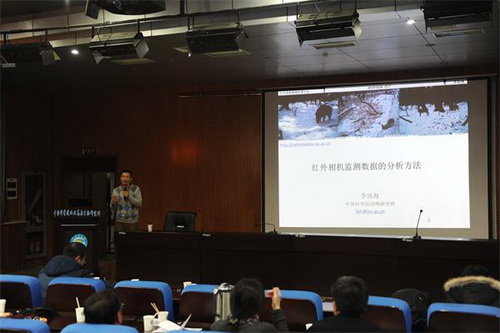 本次学术论坛和技术培训由两部分组成。中科院动物所研究员肖治术作了“野生动物红外相机监测技术应用”,介绍了如何开展野生动物红外相机监测及中国兽类多样性监测网,野生动物红外相机监测网络建设的情况和红外相机监测工作流程,并针对青海省草原的特点提出了野外鼠害和天敌动物的红外相机监测的建议。东北林业大学教授姜广顺基于其多年的红外相机监测经验,介绍了红外相机的工作原理、野外使用方法及相机型号和功能等。与此同时,他还介绍了其团队野外监测成果,用视频和照片生动地展示了野生动物红外相机监测的过程中的经验和教训。中科院动物所博士李欣海作了“红外相机监测数据的处理与分析”的报告,着重介绍了如何处理红外相机监测数据和进行数据的挖掘。三位专家均结合自身经验对未来如何开展青藏高原野生动物特别是鼠害和天敌动物监测提出了宝贵的建议。在鼠害防治治理新技术及战略研讨环节,中科院动物所博士刘明作了“不育剂EP-1对高原鼠兔的不育效果及相关机制”的报告,对不育剂在高原鼠兔种群数量控制中的效果和机制进行了全面阐述。西北高原所研究员边疆晖作了“高原鼠兔无公害新型生物防治技术的研究”的报告,全面回顾和介绍了生物防治技术的历史和现状,并详细阐述了其课题组使用艾美尔球虫控制高原鼠兔危害的最新进展。与会人员对新技术在青海省草地鼠害控制中的作用和应用前景进行了热烈而广泛的讨论,同时也对鹰架灭鼠等生物防控技术进行了深入的探讨。