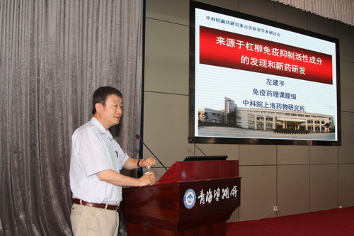 学术委员会副主任、中国科学院上海药物研究所研究员岳建民主持会议,中国科学院上海药物所研究员左建平、王逸平,中科院深圳先进技术研究院研究员蔡林涛及兰州大学博士王任其分别做了“来源于杠柳免疫抑制活性成分的发现和新药研发”、“源于天然产物的新药研发”、“纳米光敏剂介导的肿瘤光学治疗”、“基于色谱保留行为鉴别天然产物分子组成的液质联用分析”的学术报告。西北高原所、青海大学、青海师范大学、青海民族大学、青海省牧科院、青海省食品检验检测研究院、青海鲁抗大地药业公司、青海博基生物科技有限公司、北京协和医学院、西安交通大学等单位的150多位科研人员听取了学术报告,现场与会人员与各位专家进行了互动交流。