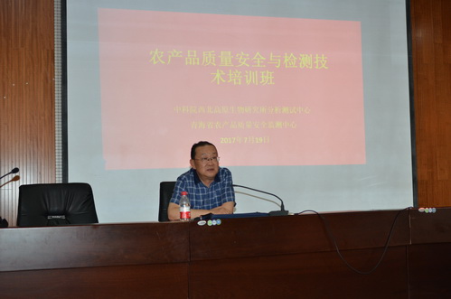 为营造农产品质量安全氛围,提升农产品质量安全监管水平,保障农产品质量安全,提升我省农产品质量安全检测能力和水平,7月19日,中国科学院西北高原生物研究所与青海省农产品质量安全监测中心共同举办了一期农产品质量安全与检测技术培训班。来自省农产品质监中心,西宁市、平安县、互助县、大通县、兴海县、民和县等农产品检测中心,贵南州、黄南州、贵德县等农业技术推广站、湟源县、大通县、湟中县农畜产品质量安全检验检测站、青海大学、青海省牧科院及中国科学院西北高原生物研究所等共计近90人参加了本次培训。会议由研究员胡风祖主持,西北高原生物研究所分析测试中心主任、研究员李玉林致欢迎辞。