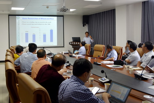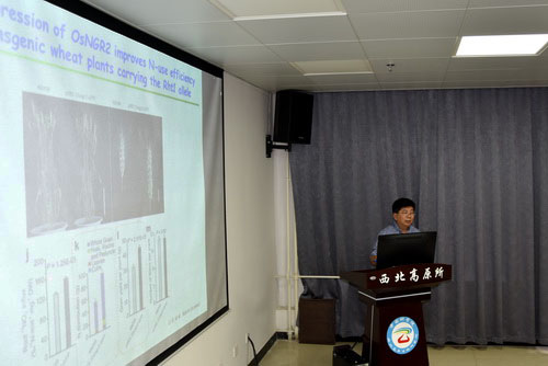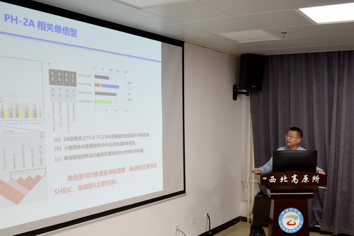 研讨会由西北高原所所长、青海省作物分子育种重点实验室主任张怀刚主持。研讨会上中国科学院遗传与发育研究所研究员傅向东、凌宏清、中国科学院成都生物研究所研究员王涛分别做了题为“Beyond the Green Evolution:how to simultaneously improve nitrogen use efficiency and grain yield in rice”“小麦A基因组测序与比较分析”和“小麦品质和产量性状的GWAS、RNA_seq分析与应用”的学术报告。