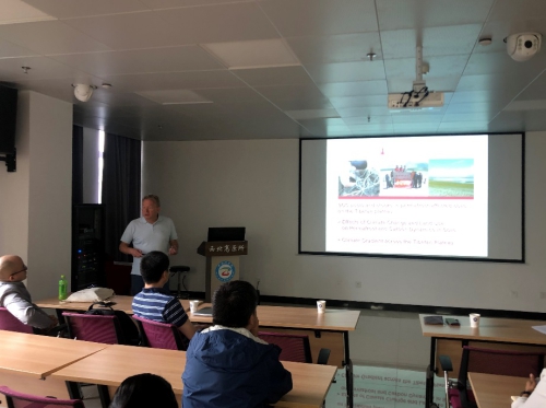 Thomas Scholten作了题为“SOC pools and stocks in permarfost affected soils on the Tibetan plateau”的报告。在报告中,Thomas Scholten主要介绍了土壤有机质的储存青藏高原永久冻土层的影响。在讨论环节,针对老师和同学们提出的问题,Thomas Scholten耐心细致作答并与大家进行深刻的探讨。