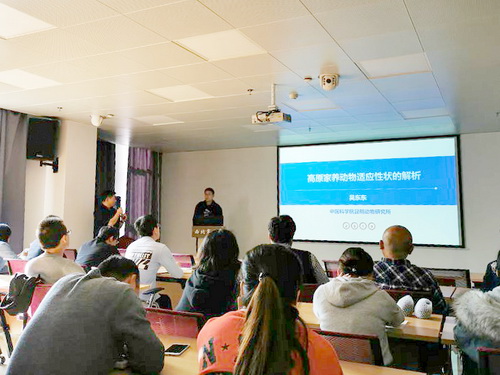 10月14日,第33期“研究生学术论坛”由中国科学院昆明动物研究所吴东东研究员开讲,题目为“青藏高原家养动物适应性状机制解析”,论坛由杨其恩研究员主持。在近1个小时的报告中,吴东东研究员介绍了多物种整合分析的趋同进化研究以及低氧与癌症的关系等内容。在讨论环节,针对老师和同学们提出的问题,吴东东研究员耐心细致作答并与大家进行深刻的探讨。