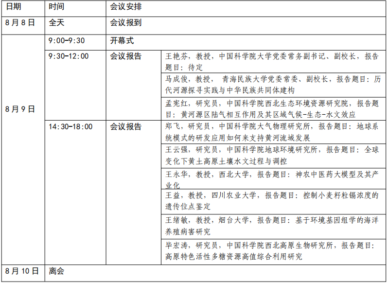 中国科学院西北高原生物研究所学术报告厅(青海省西宁市新宁路23号)