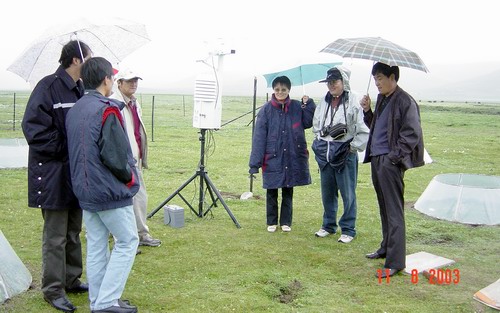 当日清晨,他们不顾前一天十几个小时的旅途颠簸和疲劳,冒雨前往课题示范基地,在课题负责人、西北高原生物研究所所长赵新全博士和周立研究员等课题组人员陪同下,分别察看了人工种植草地、半人工种植草地、草地放牧试验地、优良牧草引种试验地和草地鼠害防治试验地等示范样地;赵新全所长和周立研究员向科技部的同志详细介绍了课题执行情况及下一步的工作安排。张巧显女士和刘国华副研究员对课题提前并超额完成合同指标与取得的阶段性成果给予了充分肯定和赞扬,对课题组人员在条件艰苦的高海拔地区付出的努力表示钦佩,指出了下一步的科研和示范工作的重点。