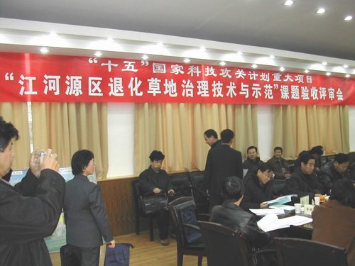 受国家科技部委托,青海省科技厅主持并邀请北京、甘肃和青海等地的有关专家组成课题验收专家组,于2003年12月19日在西宁对中国科学院西北高原生物研究所主持,与青海省畜牧兽医科学院、青海省果洛藏族自治州农牧局、青海省果洛藏族自治州草原站共同完成的国家“十五”科技攻关计划重大课题“江河源区退化草地治理技术与示范”进行了验收。