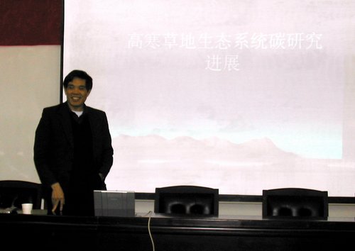 为落实2004年度院工作会议、人才会议精神,进一步活跃西高所的学术气氛,特别要以“创新跨越,持续发展”为主题,促进各学科间的相互交流,不断提高西高所的创新能力,在抓紧完成创新任务的同时,做好人才队伍的建设,为完成西高所发展规划的研究制订提供良好的基础。从4月16日开始,于每周五下午在学术报告厅进行学术讲座活动。活动将邀请同行专家、各研究中心科研人员等进行讲座。首场学术报告由日本国立环境研究所唐艳鸿博士做《海北高寒草甸生态系统碳循环研究进展》。在所的研究生、科研人员参加了会议。