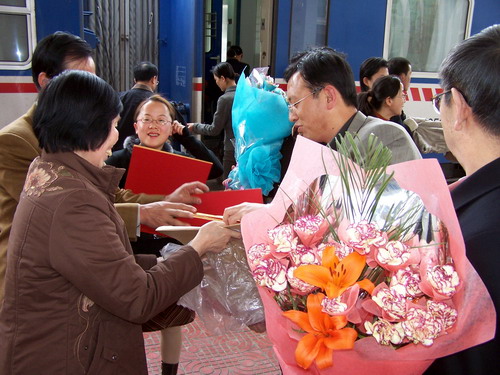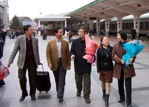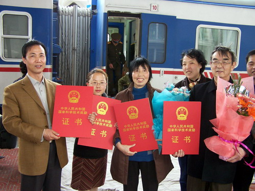 4月5日下午,在2004年度国家科学技术奖励大会上获国家自然科学二等奖的何廷农、刘尚武研究员载誉归来。所党委副书记韩发、党委委员陈世龙以及办公室、科技处等有关人员前去迎接。