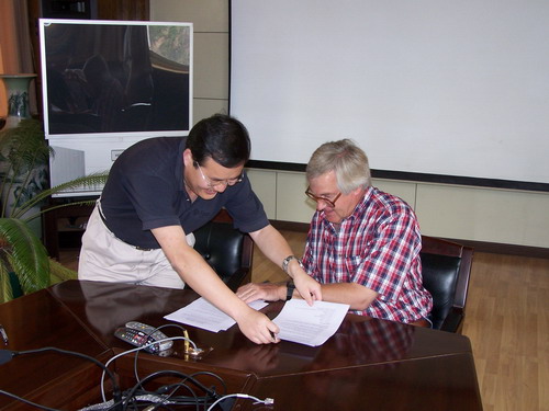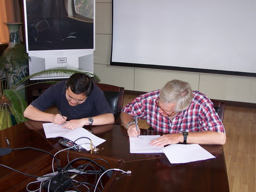 在签约仪式上,中国科学院西北高原生物研究所所长赵新全博士和美国亚利桑那州立大学生命科学院教授Andrew T. Smith博士代表双方在协议书上签字,生态研究中心主要研究人员参加了签字仪式。