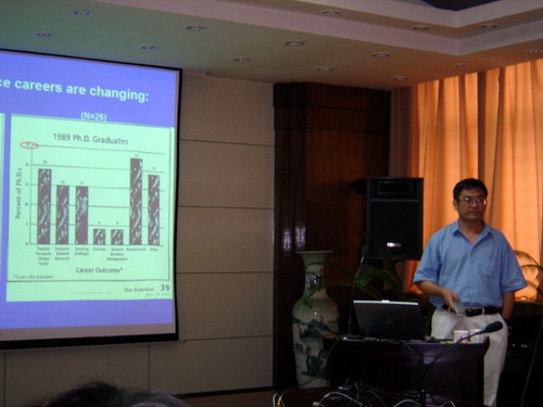 为活跃研究所的学术气氛,加强与国外先进学术思想和意识的交流,应西高所邀请,美国佛罗里达州立大学终身教授汪作新博士于7月上旬到西高所进行了学术交流和访问。访问期间,汪作新博士为全所从事科学研究的在职人员和研究生带来了精彩的学术演讲“How to be a Successful Trainee in Science”。主要内容涉及在美国从事博士后工作的必备条件及工作素质、研究论文的写作技巧及在美国申请科学基金的相关情况。西高所各中心在职研究人员及研究生均到场聆听了演讲。