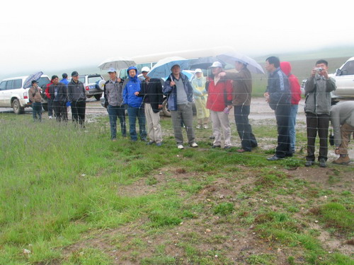 16日早7:30,孙鸿烈、郑度院士等验收组专家不辞辛劳,克服高原缺氧反应的困难,冒雨乘车前往“江河源区退化草地治理技术与示范”课题试验示范区进行了实地考察。