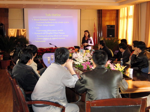 11月5-6日,美国科罗拉多州立大学自然资源生态实验室Julia A. Klein博士来西高所进行访问。访问期间Julia A. Klein博士应邀为相关研究人员和研究生做了题为《Interactions Among Climate Variability Pastoral Land Use Change And Ecosystem Dynamics On The Qinghai-Tibet Plateau An Integrated Study Approach》学术报告,其报告内容丰富,就模拟增温、人类活动对高寒草地的影响等方面做了精彩讲座。之后,与会人员就相关的学术问题进行了热烈的讨论和交流。