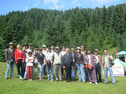 三个支社的社员们一路上谈笑风生,不时陶醉在公路两旁绿意盎然、风景如画的大自然和谐、美妙的音符之中。走进鹞子沟国家森林公园,幽静的小道,苍翠的青松,仿佛来到陶源明笔下的世外桃源,惊奇之余,社员们感到炎热盛夏里的缕缕清爽和凉快。按照考察活动的议程,社员们首先学习了胡锦涛总书记关于“八荣八耻”和建设创新型国家的有关精神,传达了有关社中央、社省委的最新动态。然后请一支社王启基研究员介绍了有关青海省“三江源”生态保护工程的发展现状和最新进展,结合研究所的研究课题,社员们开展了热烈的讨论,活跃的气氛,激烈的辩论,真像一场“策划已久”的专业学术研讨会,超乎想象,显示出九三学社西高所委员会的社员们对于青海省和“三江源”生态保护工程的极大关注和热情。会后各支社分组对鹞子沟国家森林公园进行了森林生态学考察活动,现场监测了森林生态学的有关指标,取得了原始数据。