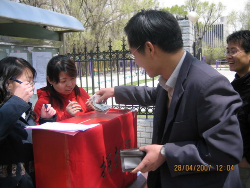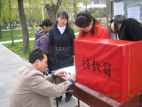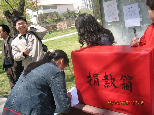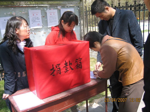 倡议书发出后,得到了我所职工、研究生、团员和离退休老同志以及社区群众积极响应,纷纷伸出援助之手,积极捐助,献出自已的一份爱心。大家的行动充分表现出无私的奉献精神和高尚的思想品德,是践行“八荣八耻”的具体体现。截止目前,先后共收到捐款202人次27404.24元,其中职工15255元,学生10955.14元、社区、社会群众1191.10元;在现场捐款过程中,带给大家太多的感动,其中最感动人的是一个叫郑瑞涛的小朋友不到三岁,稚嫩的小手拿着一沓一角面值的毛票高兴的跑到募捐箱前来捐款,这一幕我们每一个人都被感动了,工作人员高兴的将孩子抱起,让孩子用他的小手投出一份纯真和爱心,捐完钱孩子还用甜甜的声音微笑着对我们说了声谢谢,其实该说谢谢的人是我们,谢谢他带给我们如此单纯的感动;还有一位与我们素不相识、年过花甲的老先生,看到我们的倡议书后,回家之后又专程从离我所很远的住处赶到我所,将沾满汗水的伍佰元钱投进了捐款箱,并留下了如诗的期望“‘请交:得尿毒症的研究生。祝他早日康复!所有的祝福—期望—都在不言中’落款:同领域的科学工作者”。