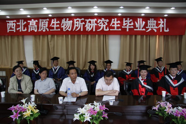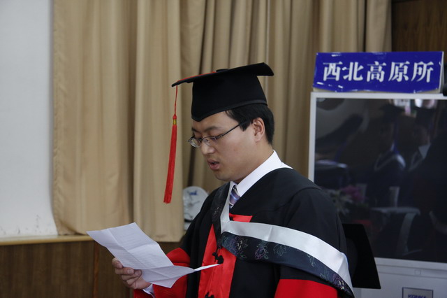 最后,党委书记、所长赵新全研究员代表所领导班子向全体毕业生表示祝贺。肯定了三年来广大同学为西高所的发展做出的历史性贡献,感谢同学们用优异的成绩为研究所争得荣誉。赠与同学们“责任、诚信、创新”的六字箴言,希望同学们牢记肩头的责任,保持和发扬西高所“爱国、奉献”的光荣传统,以自己的青春和热血,谱写光辉灿烂的篇章;希望同学们在未来的社会生活中要十分珍惜自己的信誉和西高所的声望,诚信为本,踏实工作,为学要严,为人要正,做一个引领风尚的人;希望同学们能够秉承高原人追求卓越、勇于创新的传统,保持和发扬西高所“唯实、求真、协力、创新”的优良学风,在未来的工作中做出更多富有创造性的贡献。简单的六个字承载着研究所、领导和老师们殷切的希望和深沉的爱。毕业时分临别时刻,深感时光短暂,希望大家能够经常回研究所看看,回到大家光荣与梦想开始的地方。这时,不舍和感伤涌上心头,赵所长原本满含激情的声音渐渐弱了下来,终于没能控制住内心的激动和伤感,赵所长哽咽了,激动的泪水夺眶而出,画面瞬间定格在我们每一个人的心中,就是那一刻的哽咽和泪水让所有人都心头一暖,深深地被感动,那一刻的哽咽让所有人铭记这个充满温暖和真情的毕业典礼!