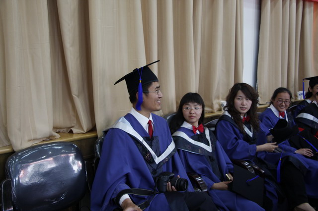 毕业临近,时间过的好像流沙,看起来漫长,却无时无刻不在逝去;想挽留,一伸手,有限的时光却在指间悄然溜走,毕业答辩似乎才在昨天,今天-2008年6月23日,毕业典礼便已如期而至。三年的点滴生活在这一刻涌上心间,这一刻身着学位服的我们心头几分兴奋、几分感伤又几分沉重……流苏、披肩都承载着难以表述的情感。