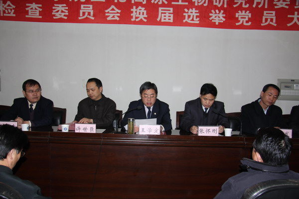 党委书记赵新全代表中共西高所第九届委员会做了党委工作报告,陈桂琛同志代表第六届纪律检查委员会做了工作报告。经征求全体党员意见后,大会以热烈的掌声通过了两个报告。兰州分院副院长、党组成员杨青春同志宣读了中共兰州分院党组文件《关于西北高原生物研究所第十届党委委员、第七届纪委委员候选人的批复》。
