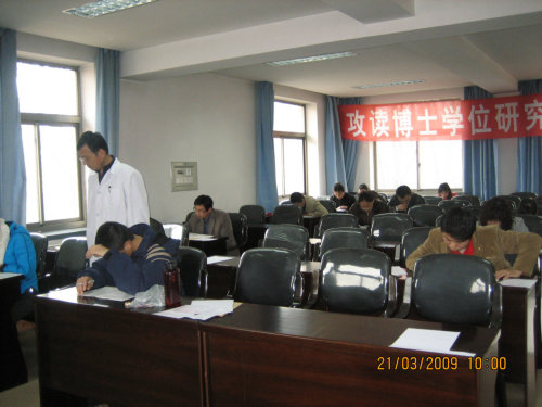 2009年3月21日、22日,我所2009年秋季博士入学考试在我所标本馆401教室如期举行,本着公开、公正、公平的考试原则,监考人员认真履行工作职责,为考生提供良好的考试环境,尽职尽责保证考试的顺利进行。考试期间我所主管研究生教育的所领导陈世龙副所长亲临考场进行巡视。