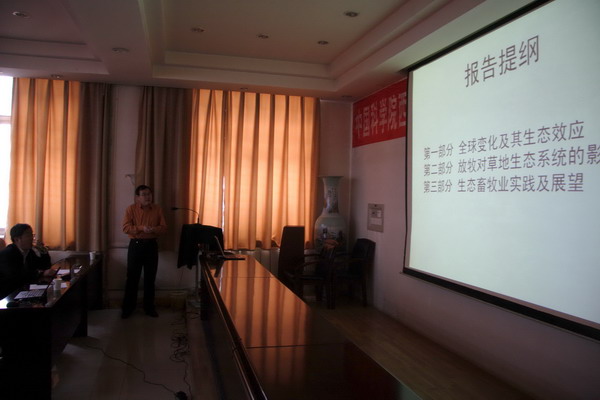 赵新全书记作了“高寒草甸生态系统可持续管理:理论、实践、展望”报告,他运用科学数据分别介绍全球变化及其生态效应、放牧对草地生态系统的影响和生态畜牧业实践及展望,并从九个方面反思了过去对现代农牧业认识的片面性,提出了新时期生态畜牧业发展的思路。