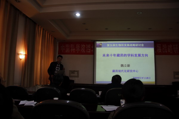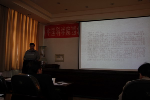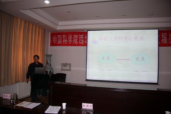 陈桂琛副所长作了“科技成果转化与产业化的若干问题”报告,他首先介绍了我国高技术产业成果转化与产业化背景,阐述了青海生物资源开发与产业化存在的问题,分析了西高所在生物产业研发平台与工作基础优势,最后提出西高所在科技成果转化与产业化的思路。