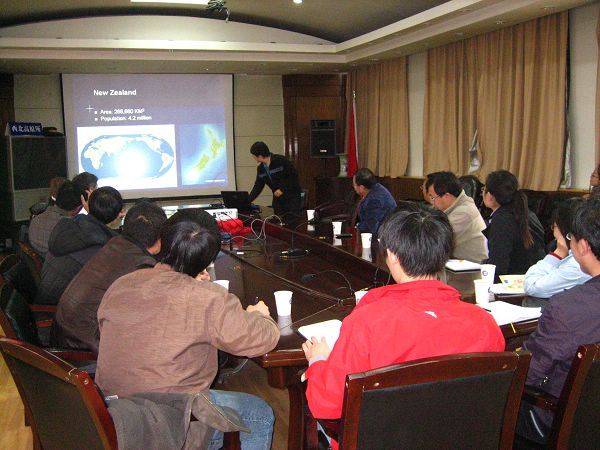 2009年11月9日-11日,新西兰梅西大学自然研究所博士David Raubenheimer,Steven Sarre及纪维红访问我所。David博士一行在生态研究中心张堰铭研究员的陪同下对青海湖沿线生态环境进行了考察,并于11月11日在标本楼二楼会议室就生态学与野生动物管理研究为我所师生做了学术报告。