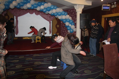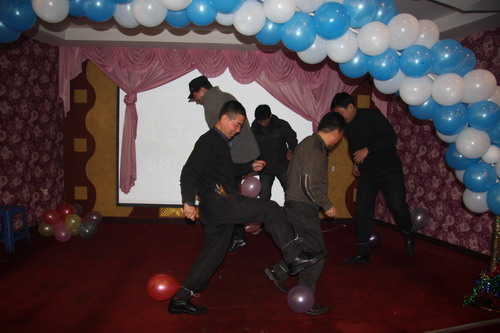 在接下来的茶艺会中,西高所工会举行了丰富多彩的各类游艺节目,有抢凳子、保龄球、踩气球、猜字谜、跳绳算数、背对猜实物、脑筋急转弯等,期间还有不少同志一展歌喉,为大家送上节日的问候,活动期间,所领导、中层领导还为大家抽取了幸运大奖,三个多小时的游艺活动,掌声、欢呼声此起彼伏,在浓浓的节日气氛中欢庆新年。
