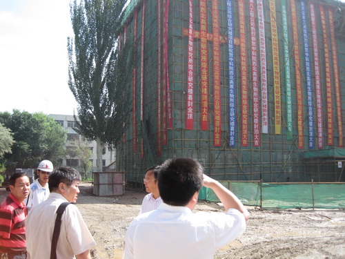 孔局长一行一到西宁,不顾旅途劳累直奔西高所创新三期西北高原资源与生态综合研究平台建设项目工地,在西高所副所长陈世龙及基建管理人员的陪同下,深入工地现场仔细查看了解了工程质量和进度情况。在施工现场,孔局长再三叮嘱施工、监理单位现场管理人员一定要把好工程质量关,给研究所交一个满意的工程。