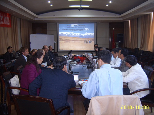 2010年10月9日,会议分小组进一步就项目的总目标及具体的任务进行了提议和讨论。包括研究青海高原草地利用、生物多样性和土地退化的相互关系,管理生态系统商品和服务的方法,利用生态系统的管理活动来恢复退化草地,用生态学、经济学、社会学来指导生态系统服务的经济评估等。最终,会议初步拟定了申报项目的实施内容与实施方法,于10月10日圆满结束。(撰稿人:周华坤、陈世龙)