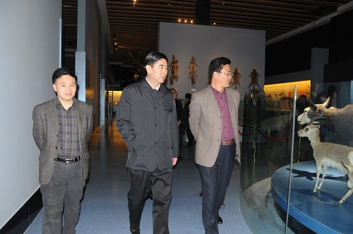 由西北高原生物研究所参与并作为技术支撑单位组建的青藏高原自然博物馆日前已基本完成布展工作。10月29日上午,青海省委书记强卫在省委副书记、西宁市委书记王建军等领导的陪同下,视察了即将开馆的青藏高原自然博物馆。强卫书记听取了青海生物科技产业园管委会主任郭天明对青藏高原自然博物建设情况的汇报并参观博物馆,对博物馆的设计理念、主体建设及布展等给予了高度评价,对布展的不足之处提出一些建议。