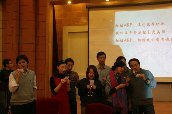 20日晚,兰州分院与院网络信息中心共同举办了新年联谊会。兰州分院下属各单位ARP相关人员参加了晚会,兰州分院党组书记、副院长谢铭致祝酒词,向ARP的辛勤工作者表示了敬意和感谢,并预祝大家在新的一年里工作顺利,身体健康。随后,别出心裁的演出、令人激动的抽奖、风趣幽默的主持掀起了晚会一个又一个高潮。大家在笑语欢声中化解了一年的辛苦,展望着来年的美好。在院网络信息中心成员一曲自导自唱的《相信ARP》歌声中,晚会圆满落下帷幕。