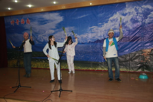 联欢活动开场表演的节目是后勤中心胡婉华带来歌曲《火苗》,劲爆的歌伴舞,使在座的职工在隆冬季节感受到这别样火焰带来的温暖;铁打的研究所流水的研究生,西高所的研究生来自五湖四海,平日里交流虽然没有什么障碍,但一提起方言,可就不一定了,温军同学为大家带来了陕北民歌《疙梁梁》,赢得了满场的喝彩;素有西高所“歌神”之称的新职工张波为大家表演了《咱老百姓》、《儿行千里》,赢得了大家一片片的掌声;全正香、张国英、姜建锋、朱洪梅四位研究生自导自演的三句半一开场就赢得了大家的掌声,只见他们手拿大葱、边舞边做出各种造型,随着一句句贴近西高所各个部门特色的三句半,掌声、喝彩声、笑声不断,四位研究生同学为此节目付出了大量的准备工作才能赢得同志们毫不吝惜的掌声;舞台剧《白毛女》由西高所分析测试中心全体工作人员表演,故事内容被改变成测试中心年底催要课题测试费用,故事内容幽默、搞笑,引用了大量流行词语和借用流行电影中的台词,把联欢会的气氛带到了最高潮;最后一个节目是现代舞《日不落》,表达了西高所职工衷心祝愿我们的祖国,像永不西陲的太阳,永远繁荣强盛,屹立在世界的东方。