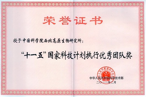 近日,西北高原生物研究所被科技部授予“'十一五'国家科技计划执行优秀团队奖”。