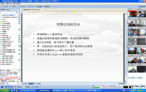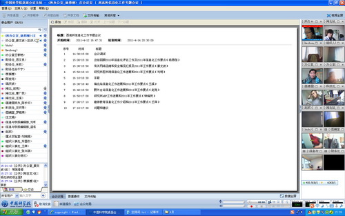 通过三年的信息化评估工作,西高所的信息化建设得到了强力推进,从排名倒数上升到了比较靠前的位置,2010年获得了中科院信息化工作进步奖,西高所信息化主管部门深知成绩得来不易,根据研究所信息化工作分散在各中心(部门)、野外台站、管理、支撑等部门,经费来源渠道各异,大家都是自己做自己的工作,缺乏沟通了解等情况,经请示所领导,决定利用桌面视频会议系统召开信息化工作专题会议,使研究所上下重视信息化、参与信息化、依靠信息化、享用信息化。